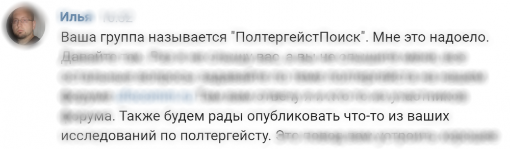 Когда лучший в рф исследователь полтергейста Виктор Фефелов покинул форум, это тоже заставило задуматься. Не знаю, не хочу тратить нервы на непродуктивные дискуссии. Будет что-то по делу - пишите пожалуйста.