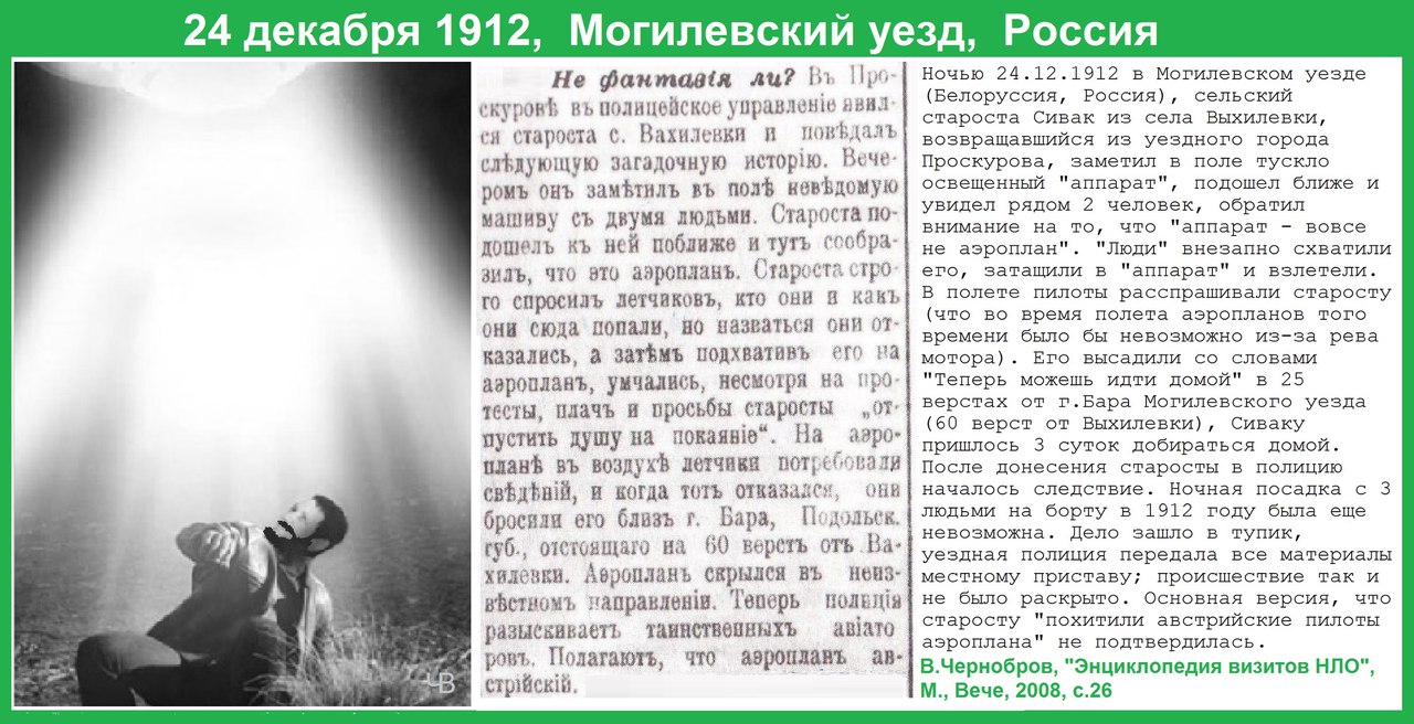 авс Опубликовано 16 января, 2017 Share Опубликовано 16 января, 2017 Вот еще одна история, которая на многих форумах описывается как произошедшая возле современного города Могилева в Беларуси. Но опять-таки - это тоже украинский г. Могилев. Kf1KXjegFb8.jpg Илья, вы наверное знакомы с этим: http://www.rulit.me/books/zabludivshiesya-vo-vremeni-read-84630-41.html http://on-planet.ru/tajny-kosmosa/991-rossiyskaya-imperiya-pioner-v-oblasti-nablyudeniy-za-nlo.html Первые в мире систематические исследования НЛО начались в Российской империи в 1914 году. В моем распоряжении есть полные архивы этих расследований (заверенные копии документов). Вас они интересуют? полагаю, всех интересуют)) Цитата Ссылка на комментарий Поделиться на другие сайты More sharing options...
