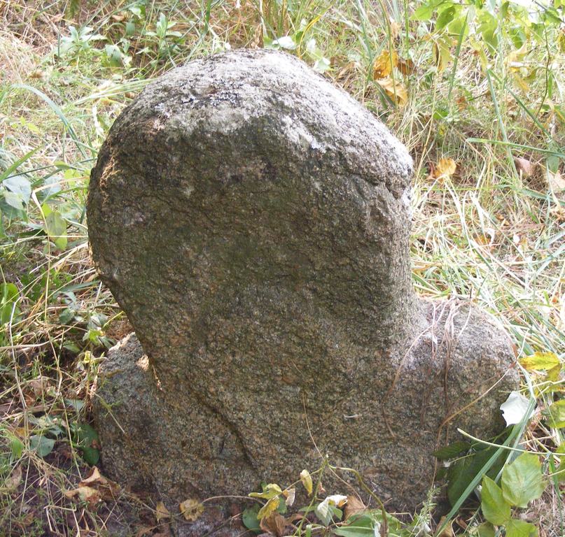 Теперь по тексту. Каменный антропоморфный крест с высеченным контуром ребенка, аналогичный идолам из-под Долгиново Вилейского р-на и г.Кобрина находится в д. Буйновичи Лельчицкого р-на. Форма креста аналогичная иным идолам позволяет сделать заключение, что и данный каменный крест изначально мог являться идолом, который впоследствии был приспособлен под надгробие. Аналогичные случаи повторного использования идолов известны в том числе в Беларуси, например, в д. Бутьки Пружанского района.